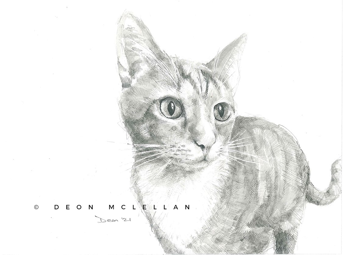 I am a creative by day and by night. As a graphic designer and illustrator, I am responsible for a number of projects with deadlines and specific conceptual deliverables; as an artist I am able to explore other subjects of interest. As a pet portrait artist, I get to freely enjoy the expression of my subject’s character and of course the expression of my client when receiving the final drawing. How I interpret the picture from which I work makes it all the more unique. Working in a loose playful style I achieve a relatively realistic impression, however, if one is wanting realism, a photograph would be best, but if one is looking for an artistic rendering by a skilled hand then you have come to the right place.